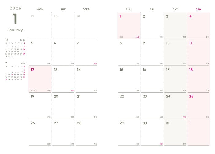 *ノートの入れ替えはHININE NOTEにお問い合わせください。マンスリーカレンダーの入れ替え可否は未定です。